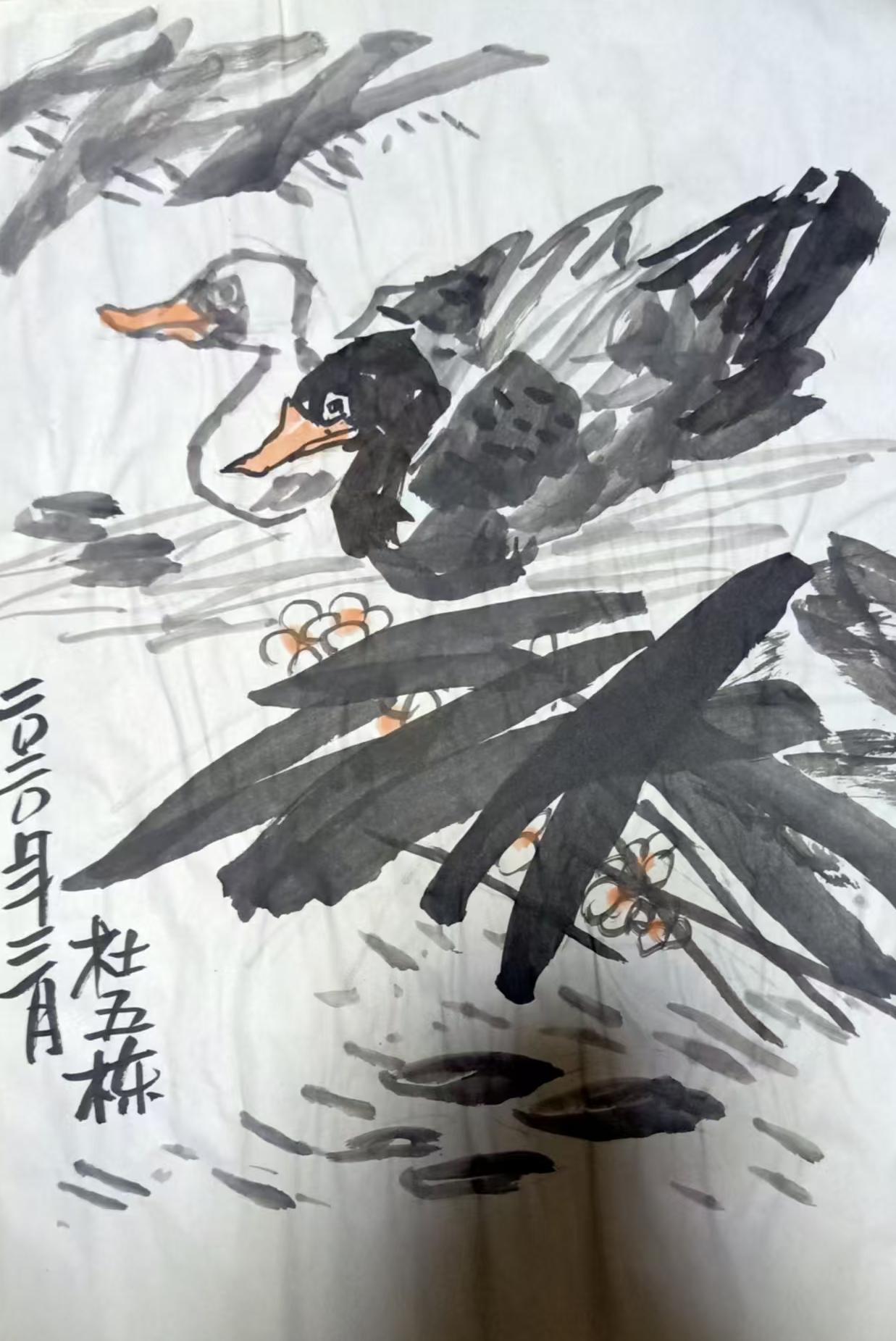 杜五栋,195O年生人,河北人,退役军人,转业到西安定居。从小酷爱绘画,最初从师县文化馆馆长程喜庆,后来从师著名书画家刘文西,西安美朮学院教授、著名书画家何漫道,以及西安美朮学院毕业的著名书画家孟寿,晁熙,王邦柱,谢勃,著名书画家陈长林。由于好学上进,遍临古今各大名家,涉猎山水、花鸟、人物各科,集古今百家之长,兼借鉴西方绘画,修养自身。古人云:″读万卷书,行万里路″。刻苦读书,学习传统文化,深入生活写生,丰富创作文化底蕴。早在上世纪七、八十年代,在文化馆创作的作品便与各大省市互相交流应用,并在各大报刊杂志发表。现为河南韵墨书画院书画家,河南建设书画研究院书画家,郑州市翰墨书画院书画家。2025年″华夏兰亭杯″全国书画大赛获金奖。″纪念周恩来总理诞辰127周年″全国书画大赛获金奖。″纪念抗战胜利8O周年″全国书画大赛获金奖。在″国粹文化传承人活动″全国书画大赛中获金奖。在″第十屇韵墨飘香书画传承大赛″全国书画大赛中获金奖。并被河南韵墨书画院特聘为客座教授,艺朮研究员,韵墨书画院院士。现为一级书画师。