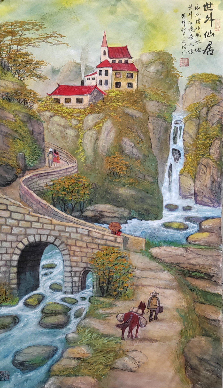 许文河,男,1959年出生,中共党员,转业军人,银行系统干部。现为中国国际书画艺术研究会会员,中国美术创作师,国家一级美术师,中央教育电视台《名家讲堂》栏目签约艺术家。中央教育电视台个人专题展。在部队服役期间,有幸给两位油画老师当了一个月的公务员,逐与油画结缘,业余时间用油画材料临摹、创作国画油画作品。逐步把油画的写实技法融入到国画意趣。逐步形成了中西合璧,青新明快,朴拙高古的艺术风格。几十年笔耕不辍,略见小成,曾在金融系统报刊上发表作品40余幅。多次参加各类画展,先后获得国家级一等奖二次,二等奖一次,国际级二等奖一次,省级三等奖五次。